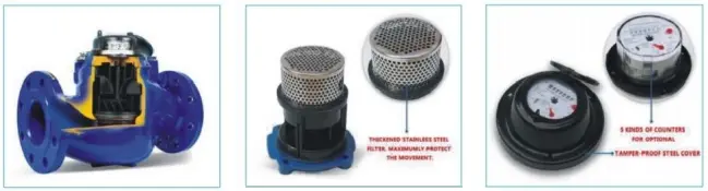 उपयोग: वर्टिकल वोल्टमैन वॉटर मीटर एक प्रकार का वोल्टमैन (स्क्रू विंग) वॉटर मीटर है। स्क्रू विंग वॉटर मीटर, जिसे वोल्टमैन वॉटर मीटर भी कहा जाता है, एक प्रकार का स्पीड वॉटर मीटर है, जो बड़े-व्यास वाली पाइपलाइन में उपयोग के लिए उपयुक्त है। यह बड़ी प्रवाह क्षमता और छोटे दबाव हानि की विशेषता है।